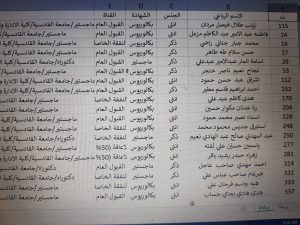 على جميع الاسماء المذكوره في الجدول ادناه بضروره مراجعة الكلية وجلب الملفات الورقيه لهم لغرض اكمال عملية التدقيق خلافه لن تدقق الملفات: