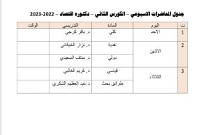 الجدول الدراسي للكورس الثاني لبرنامج الدكتوراه 2022-2023/قسم إدارة الاعمال