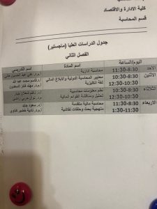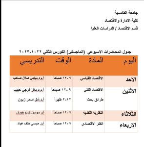 الجدول الدراسي للكورس الثاني لبرنامج الماجستير2022-2023 قسم إدارة الاعمال