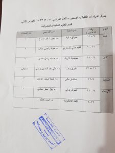 | اليوم | الساعة | اسم المادة | اسم التدريسي |