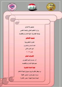 بتوجيه وإشراف من قبل السيدة عميد كلية الإدارة والاقتصاد الأستاذ الدكتور سوسن كريم الجبوري وتنفيذ الموظفة في شعبة الإعلام شيماء حمزة نهابة أصدرت شعبة إعلام كلية الإدارة والاقتصاد نشرتها الشهرية السادسة والعشرين والتي توثق نشاطات الكلية العلمية والإدارية والخدمية لشهر كانون الثاني المنصرم.